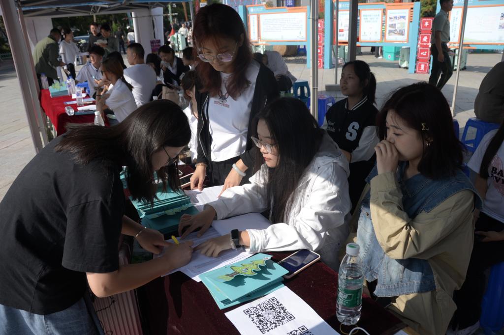 在经济管理学院迎新点前,新生辅导员刘江说:“学院制作了由全体新生姓名组成的姓名墙‘欢迎新同学’,青春、喜庆,让新生和家长直观的感受到欢迎和期许,留下专属于经管学子的迎新记忆。希望全体新生与2027年的自己来个青春的约定,在未来大学四年的时光里找到更好的自己。”