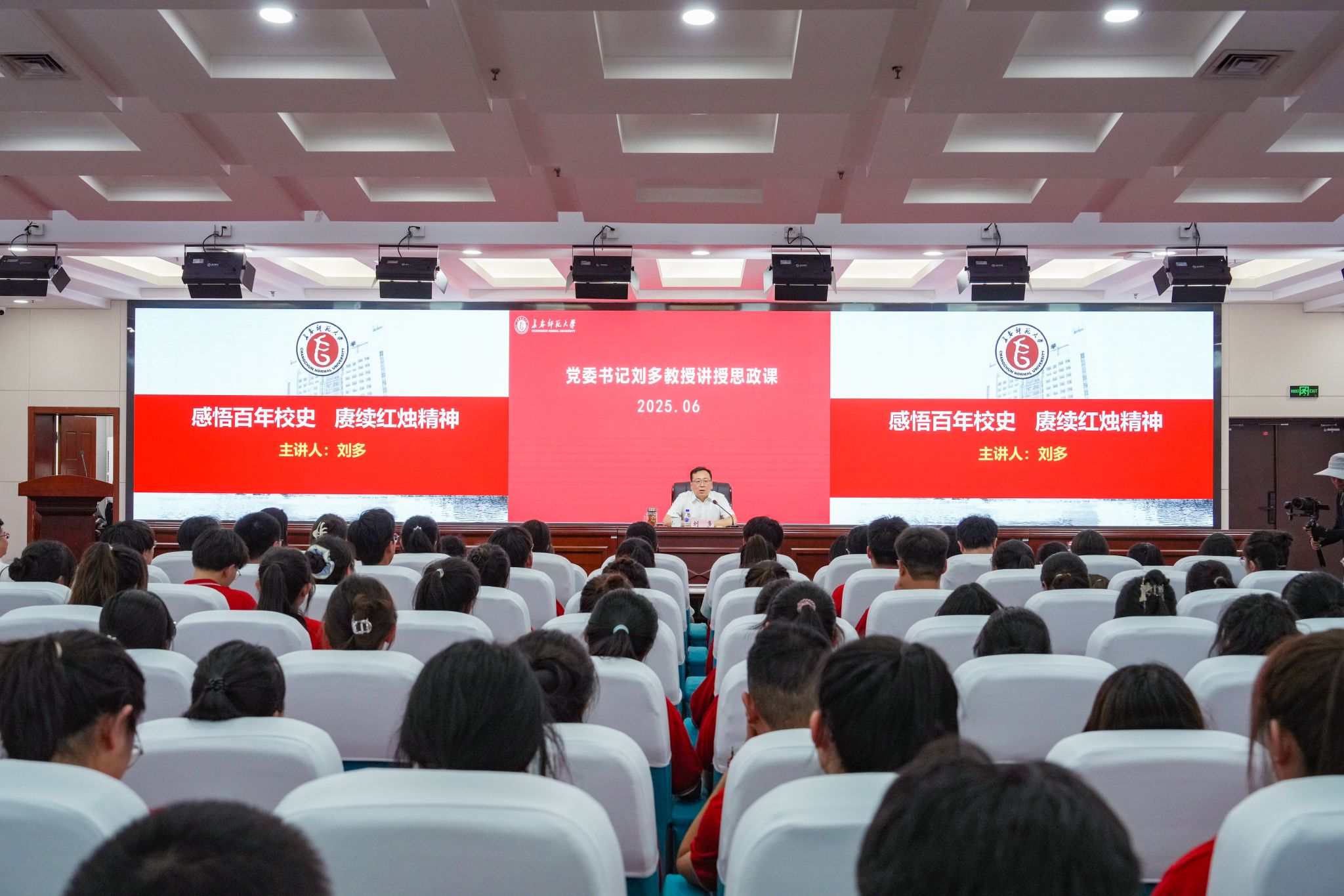 6月24日,党委书记刘多以“感悟百年校史 赓续红烛精神”为主题,在图书馆报告厅为十四期青马学员、劳治班学员讲授思政课。